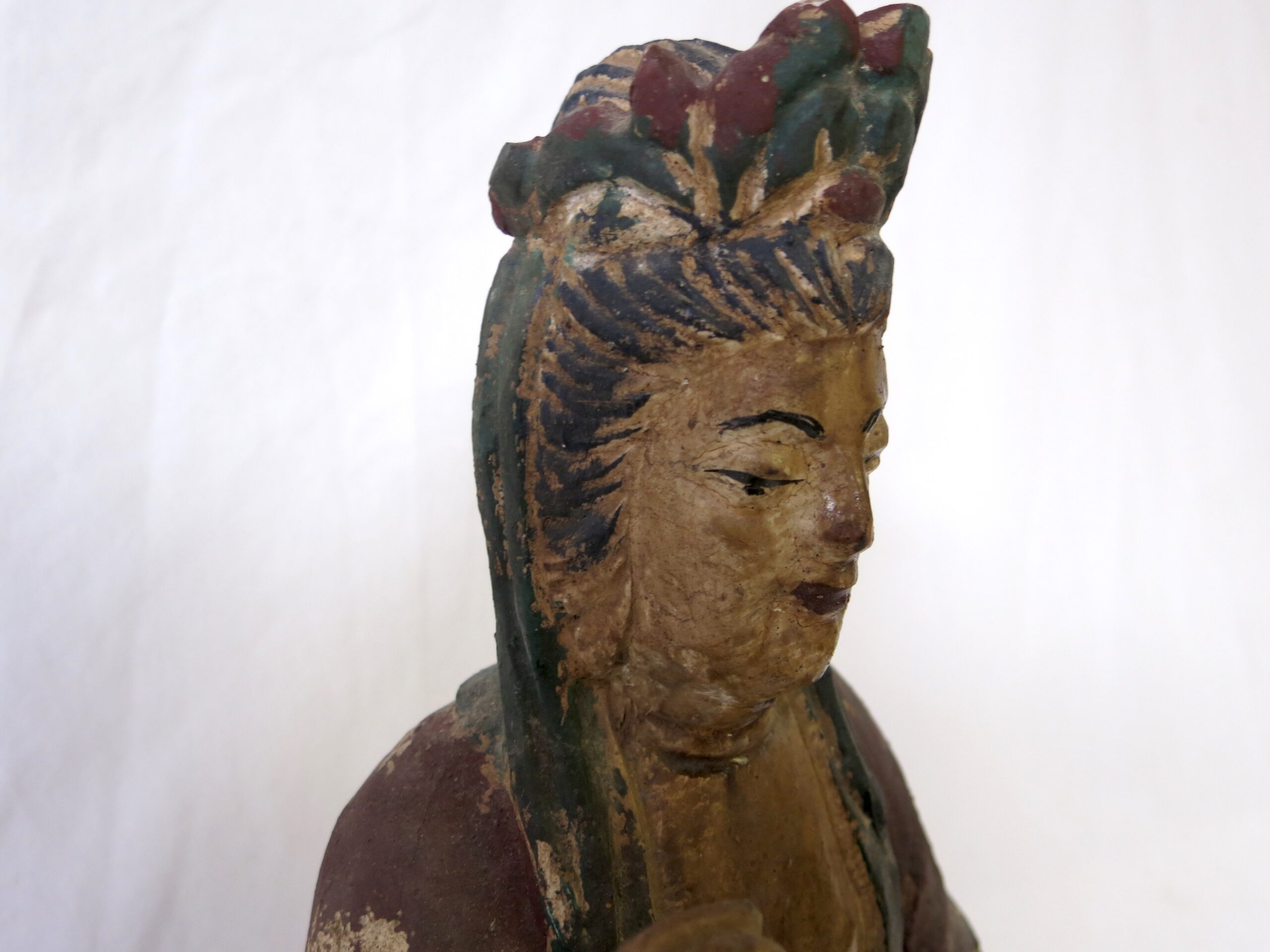 16th-17th C. Ming Dynasty Carved Wood Polychrome Guanyin Statue