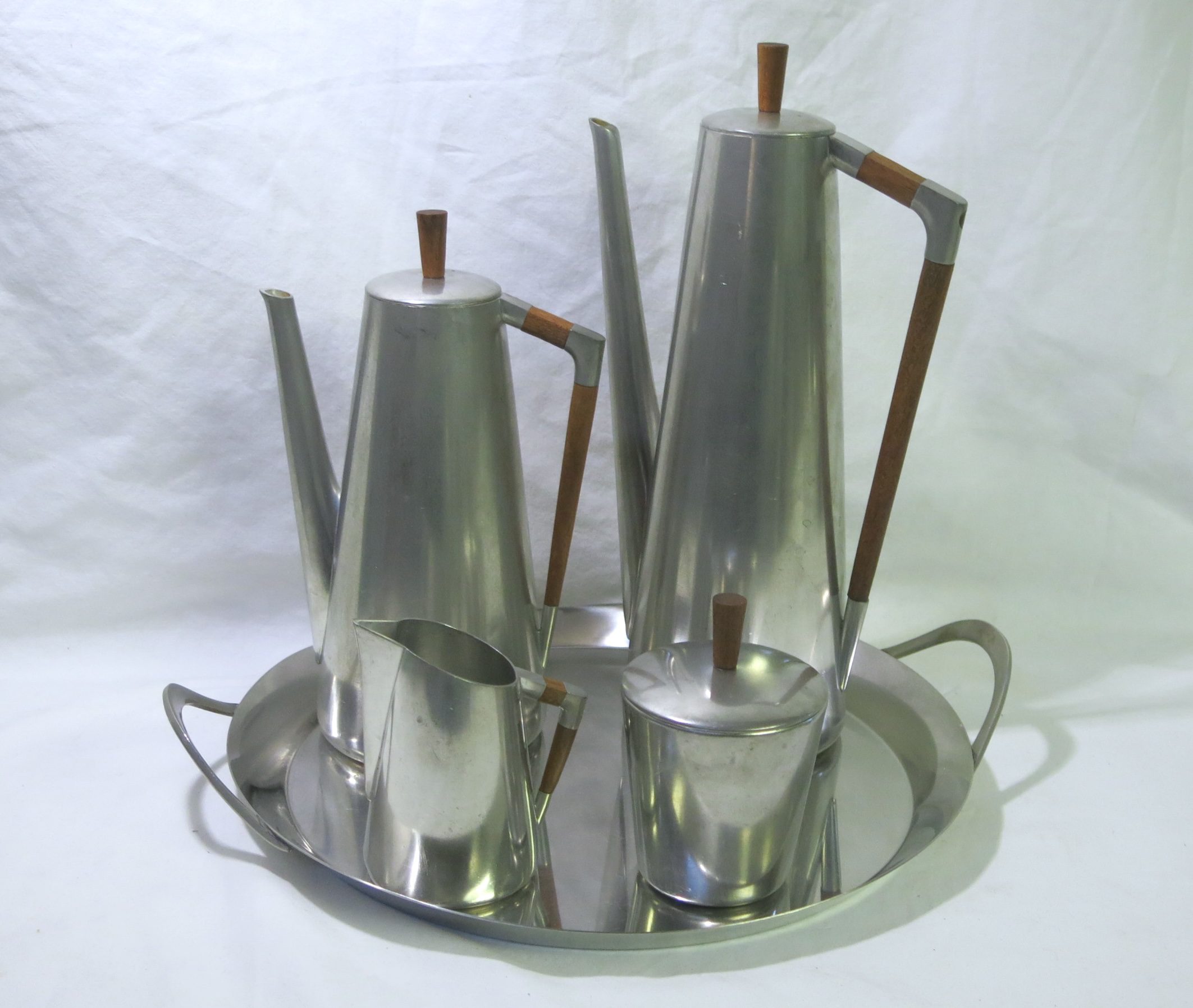 1960’s Royal Holland KMD Tiel Pewter and Teak Coffee/Tea Set