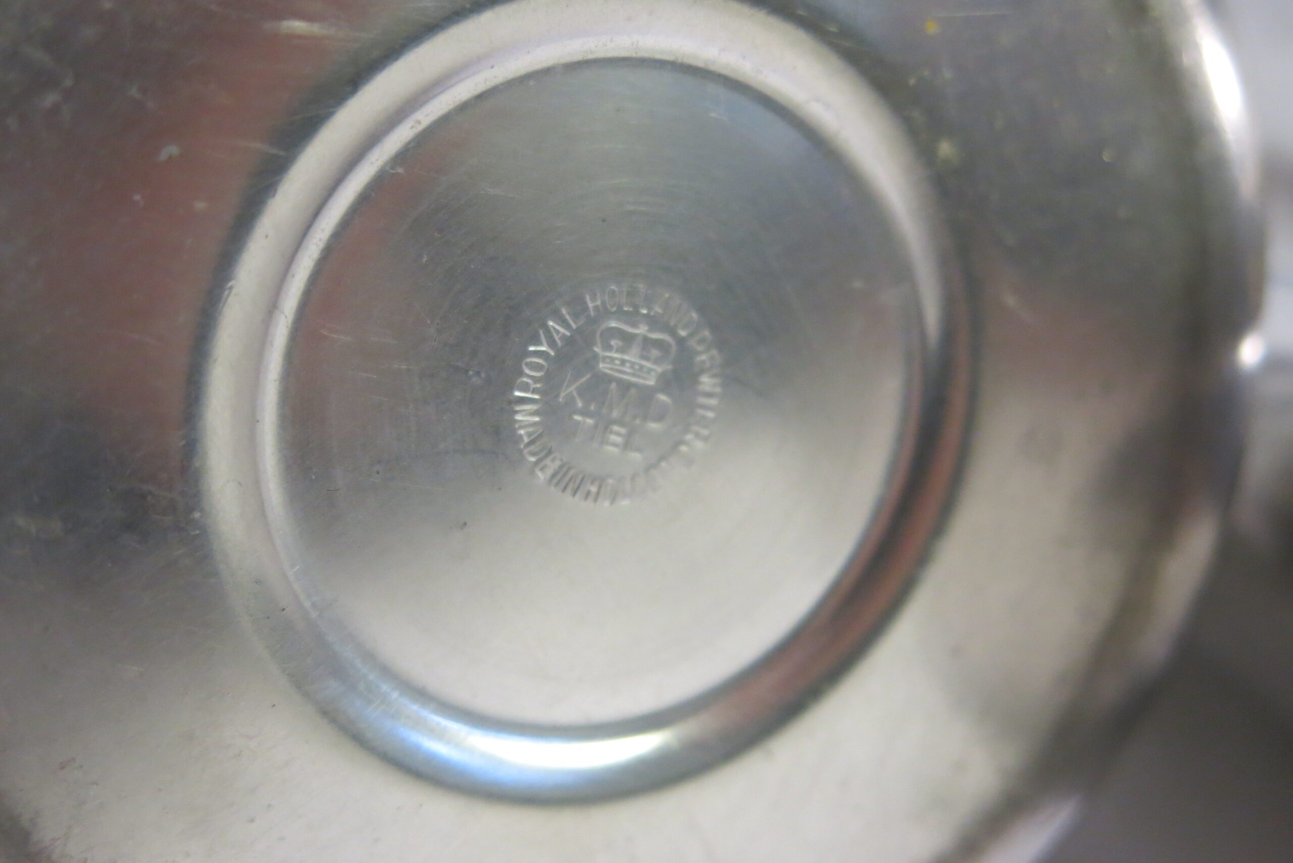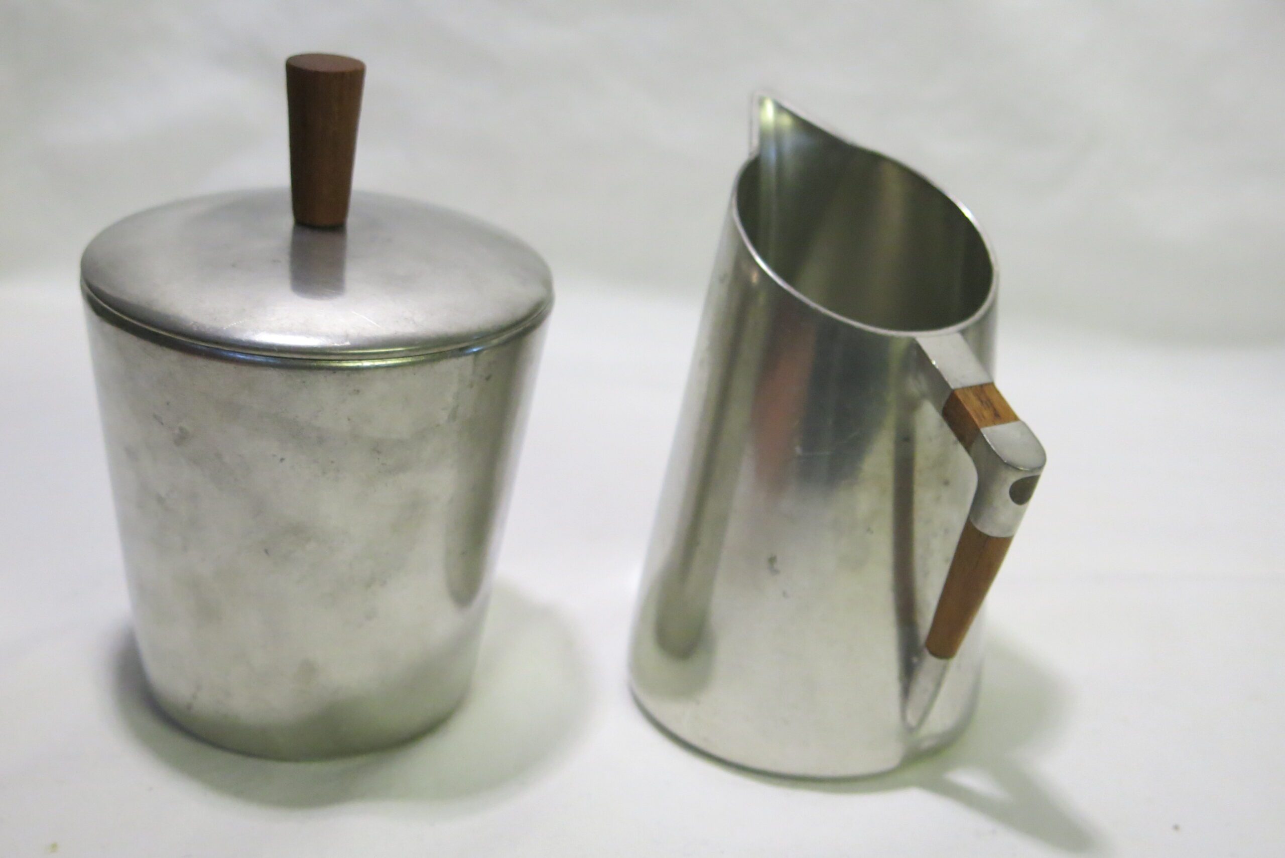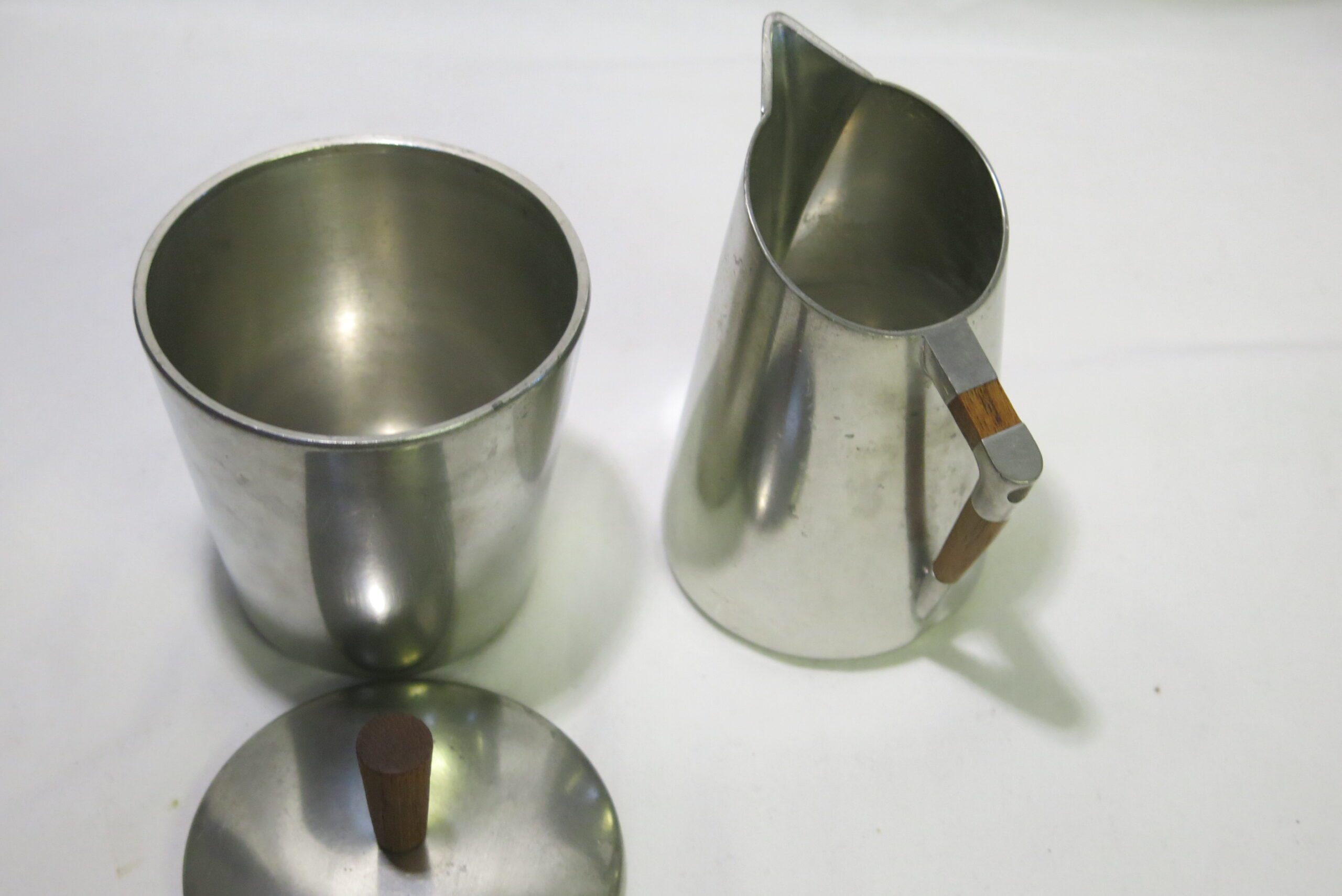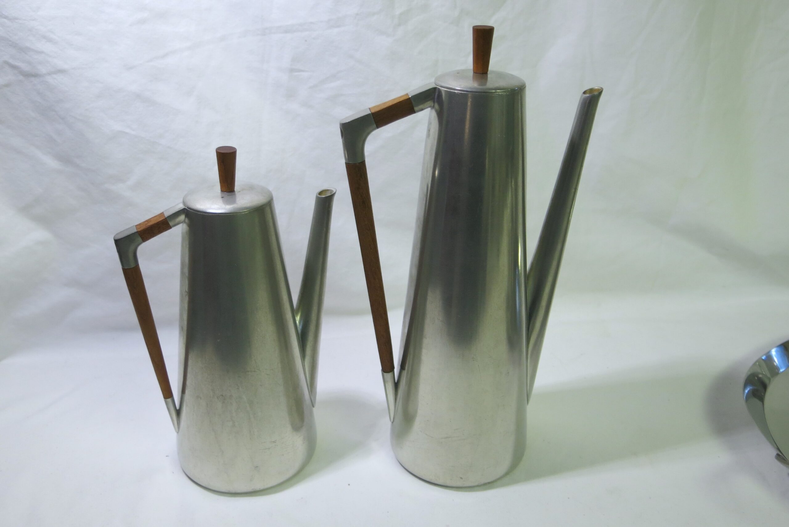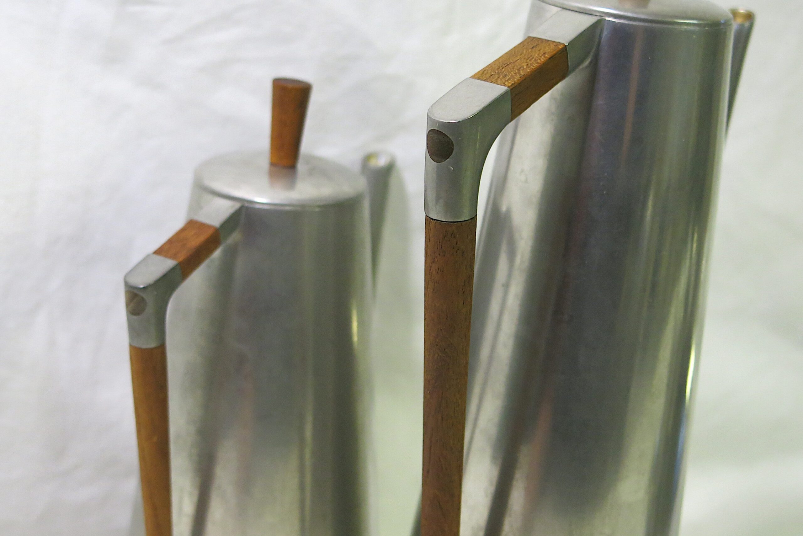 Mid Century Royal Holland KMD Tiel Daalderop pewter and teak coffee/tea set. From the 60s with beautiful, sleek lines