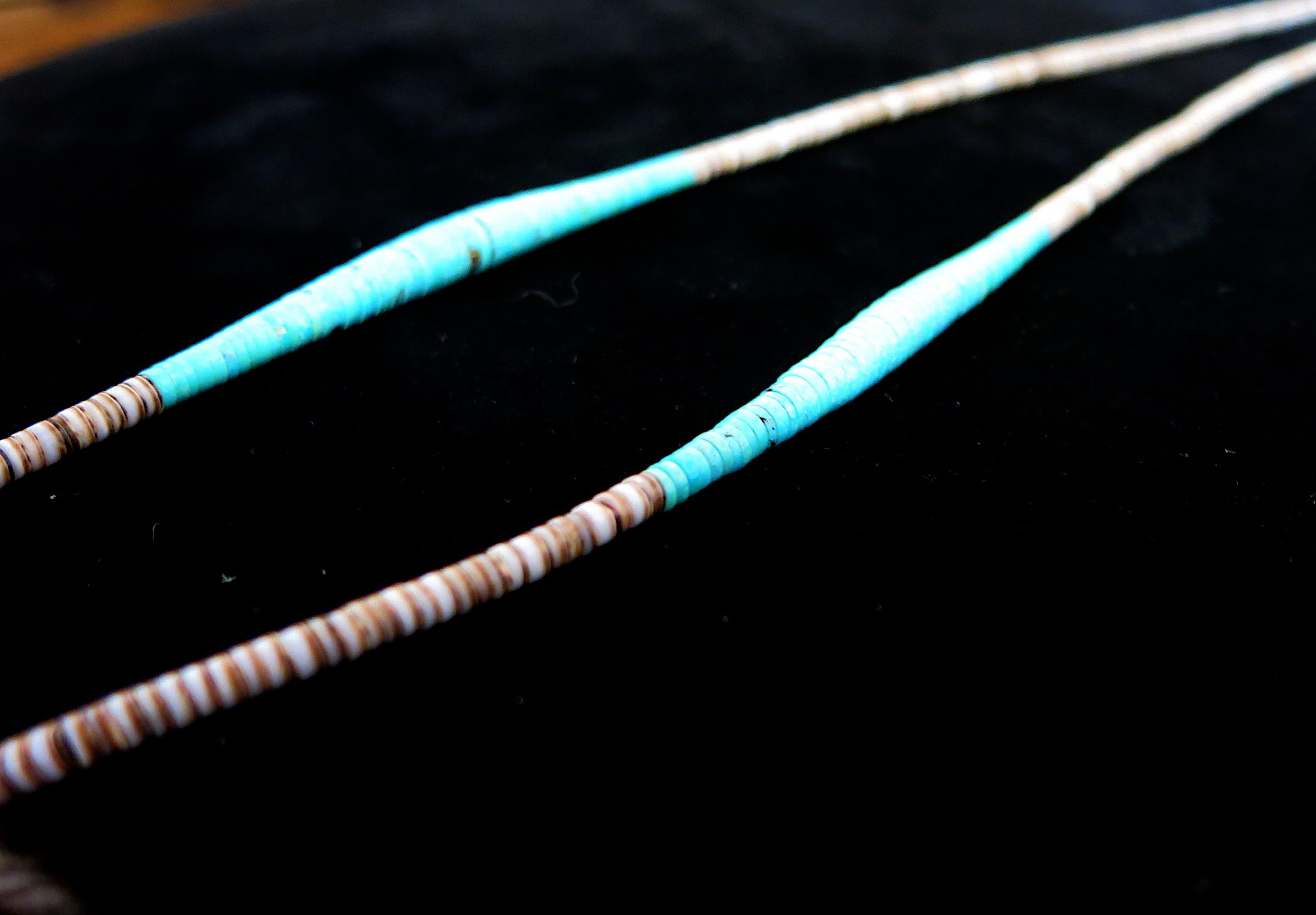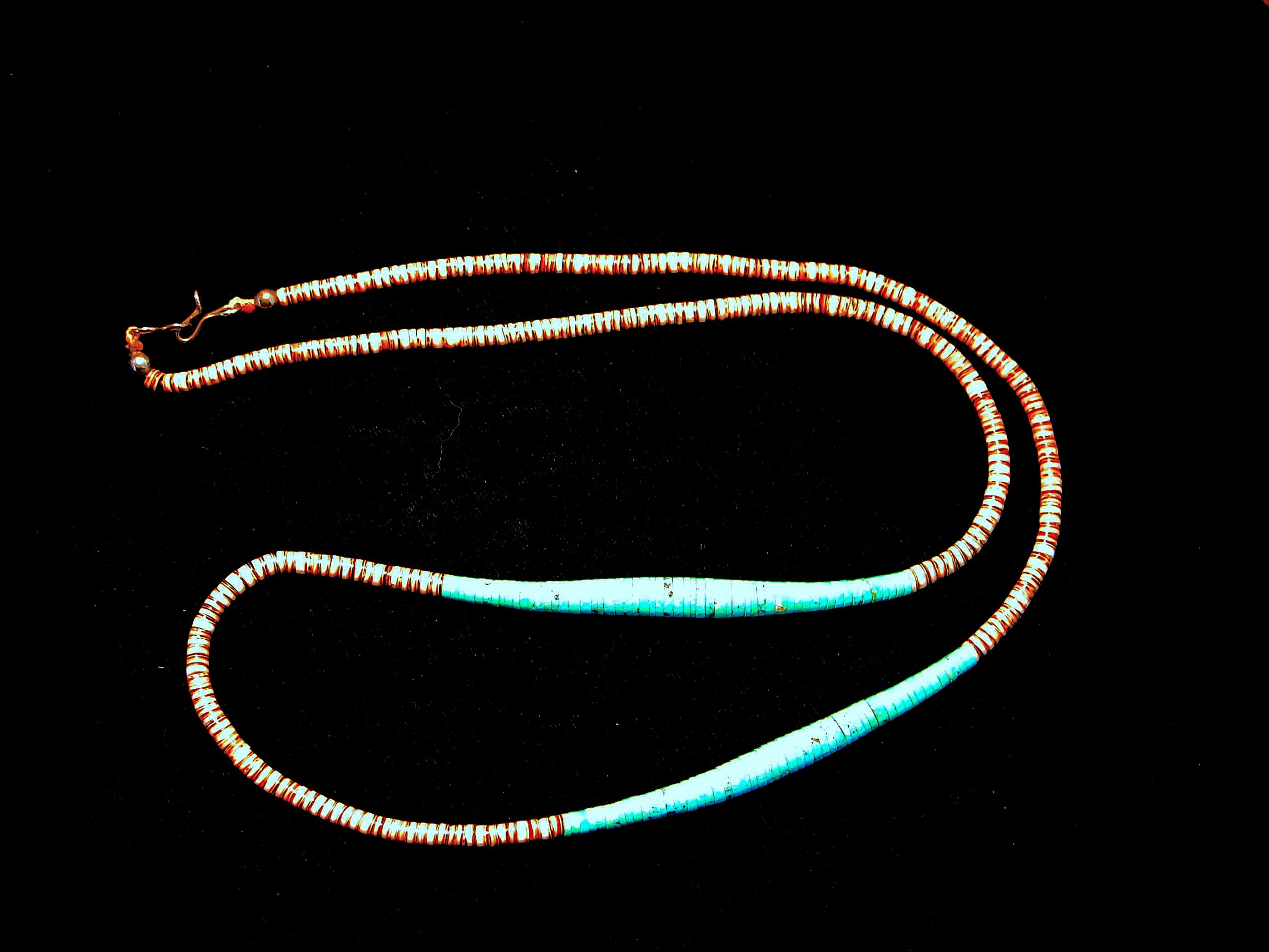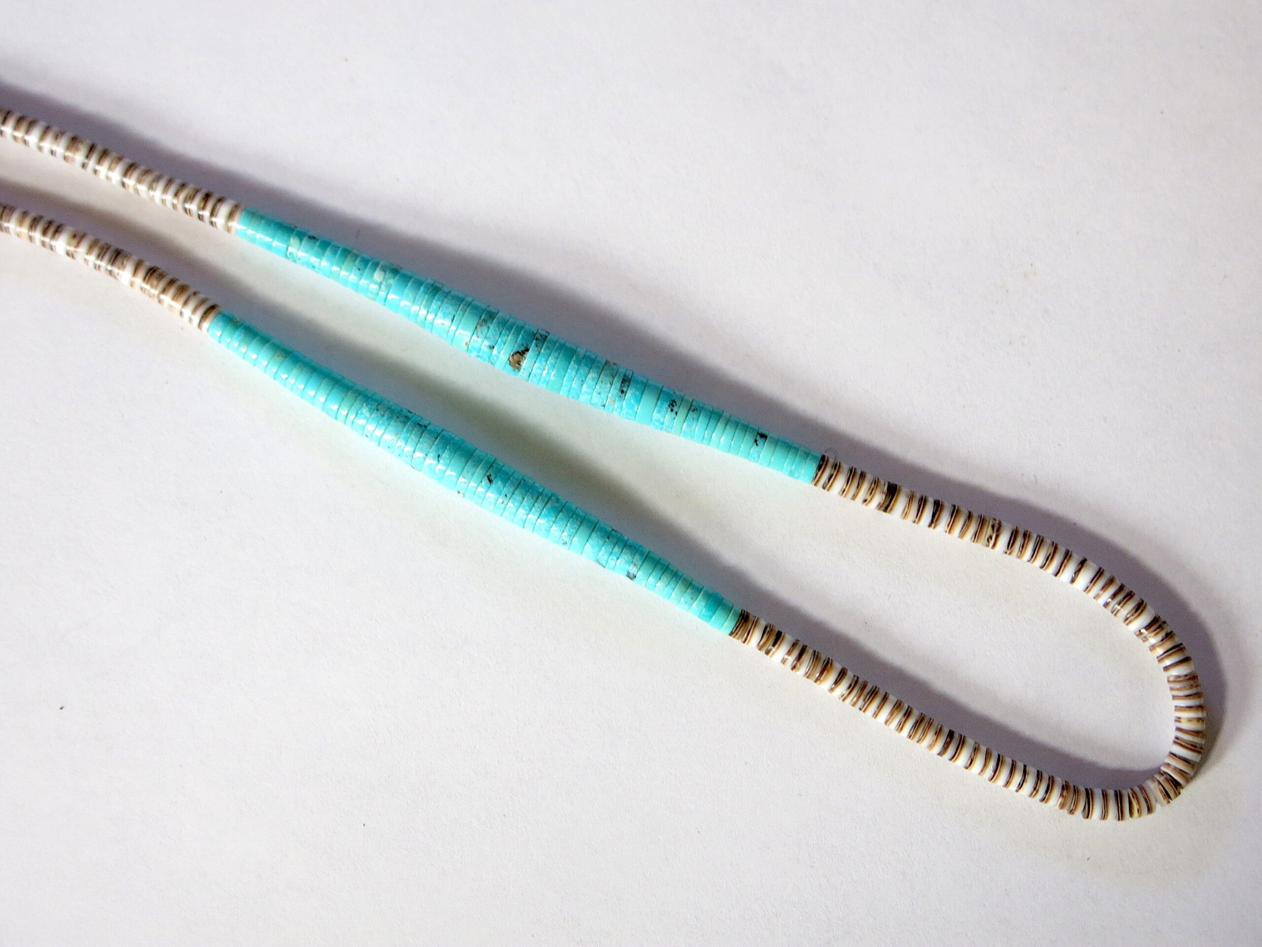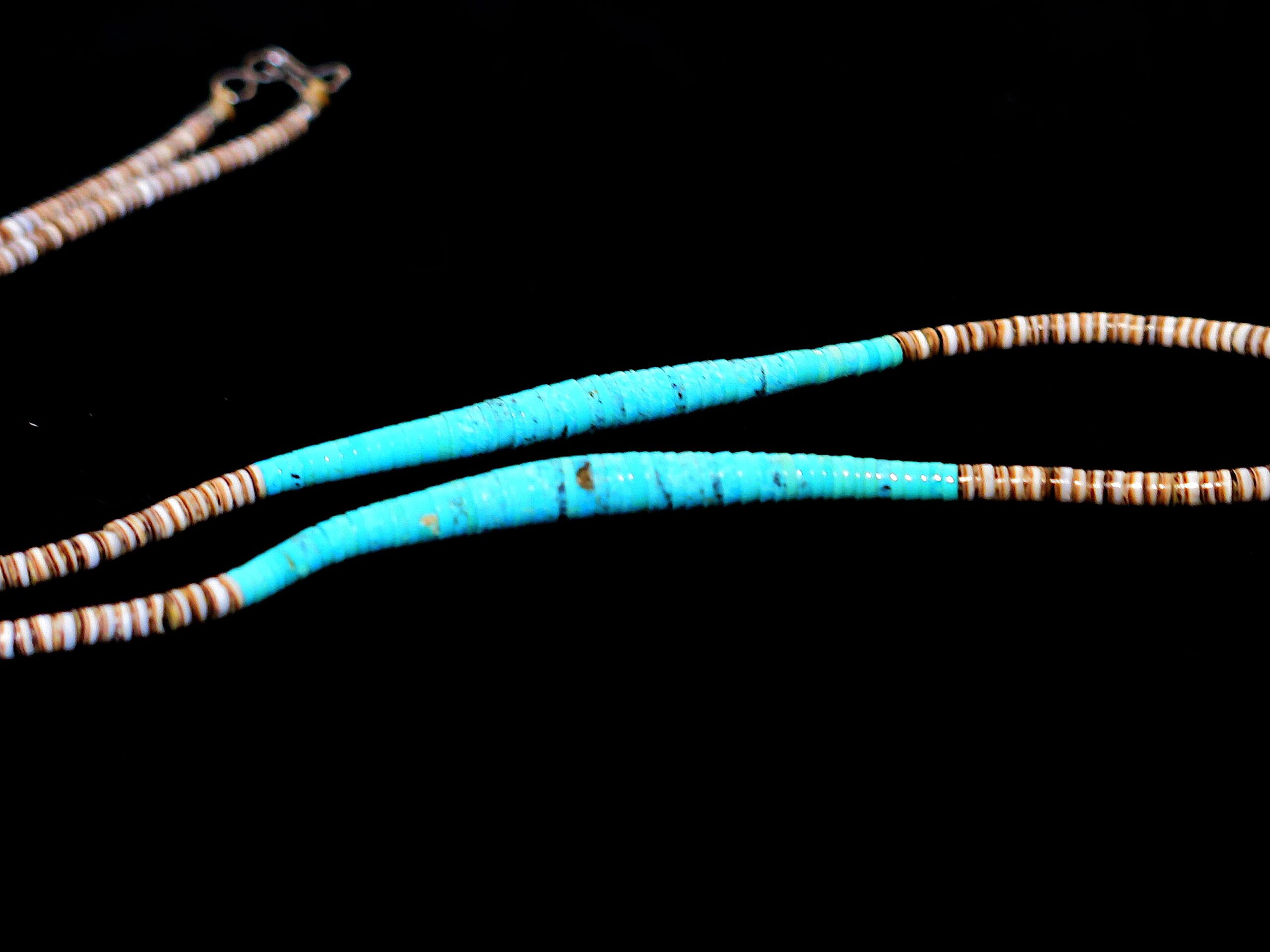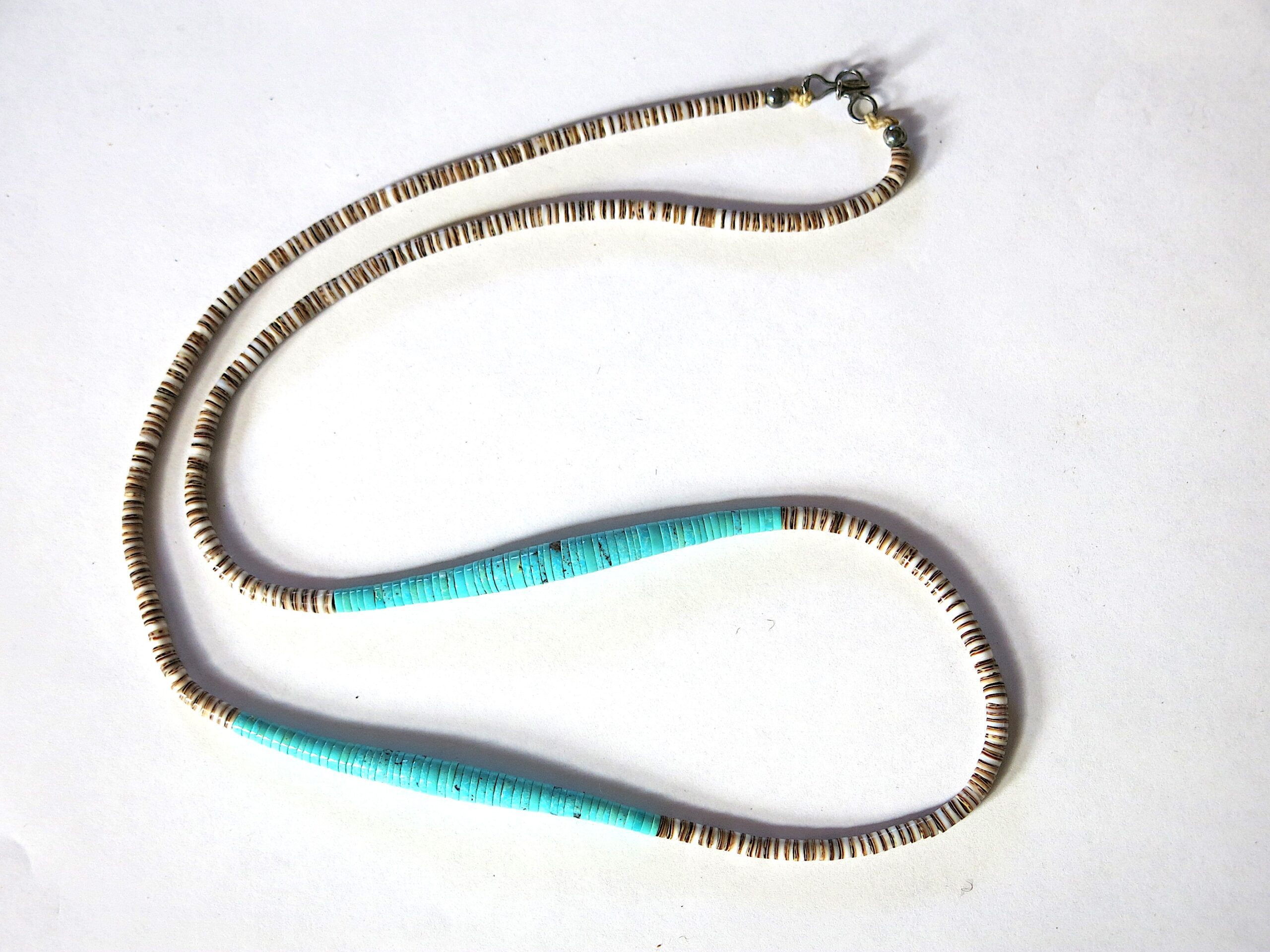 Heishi Shell and Turquoise Graduated Bead Necklace 26″