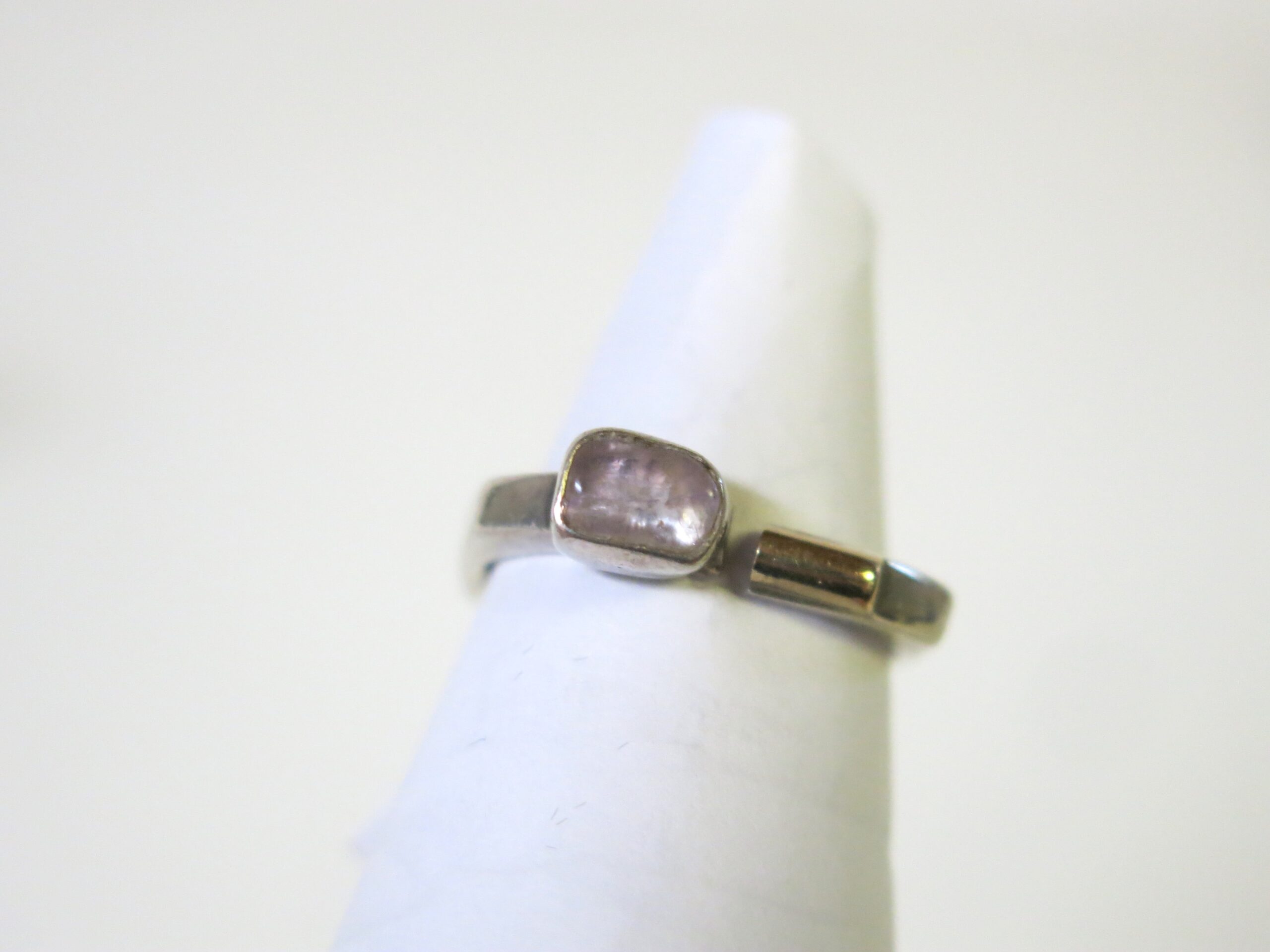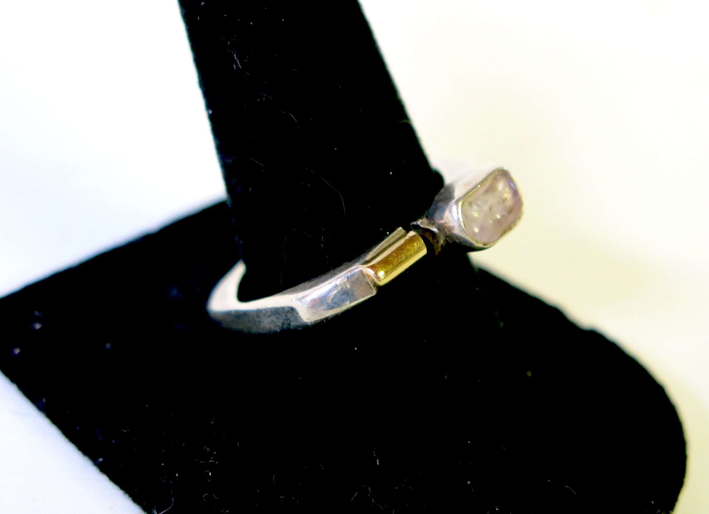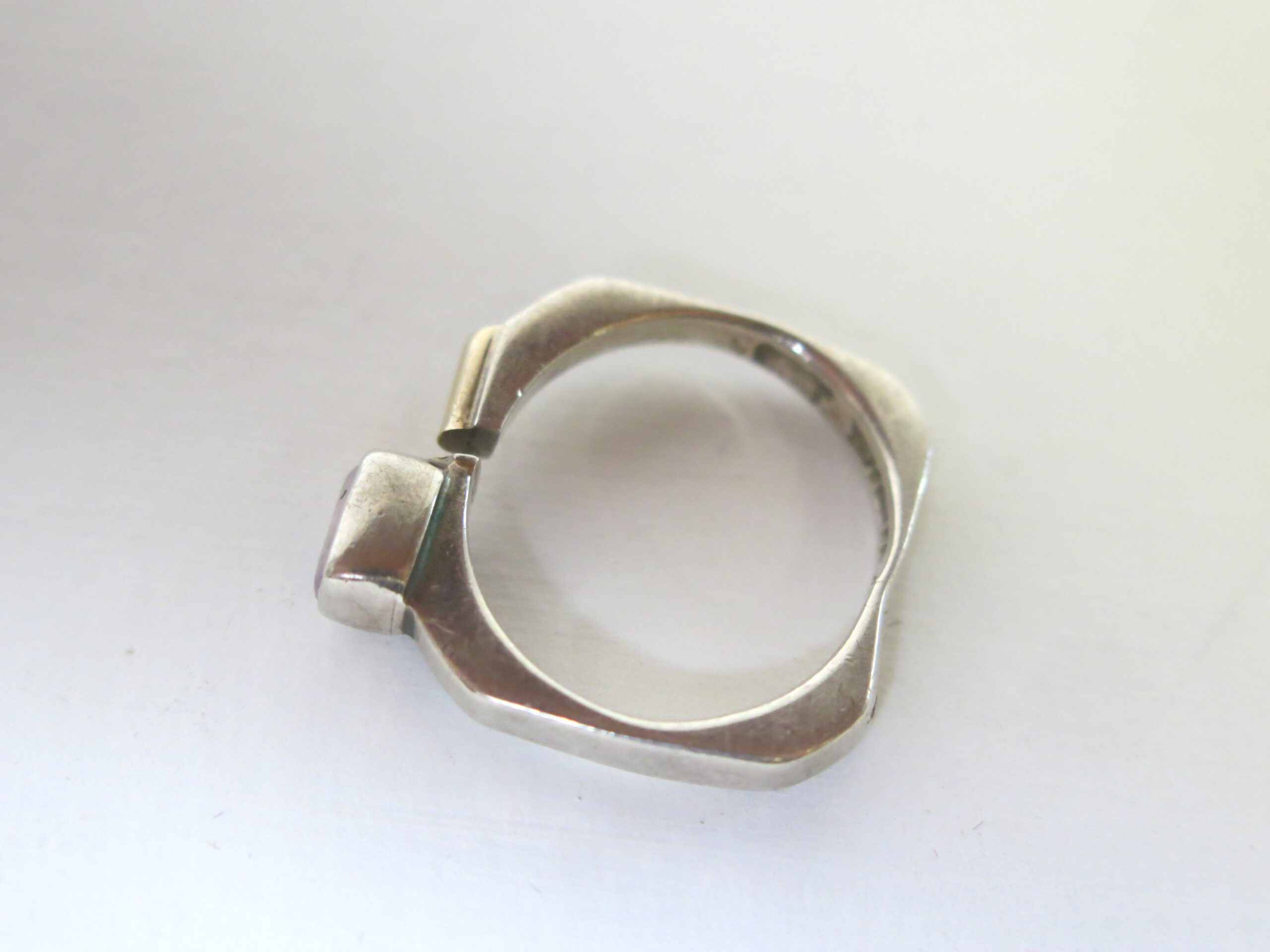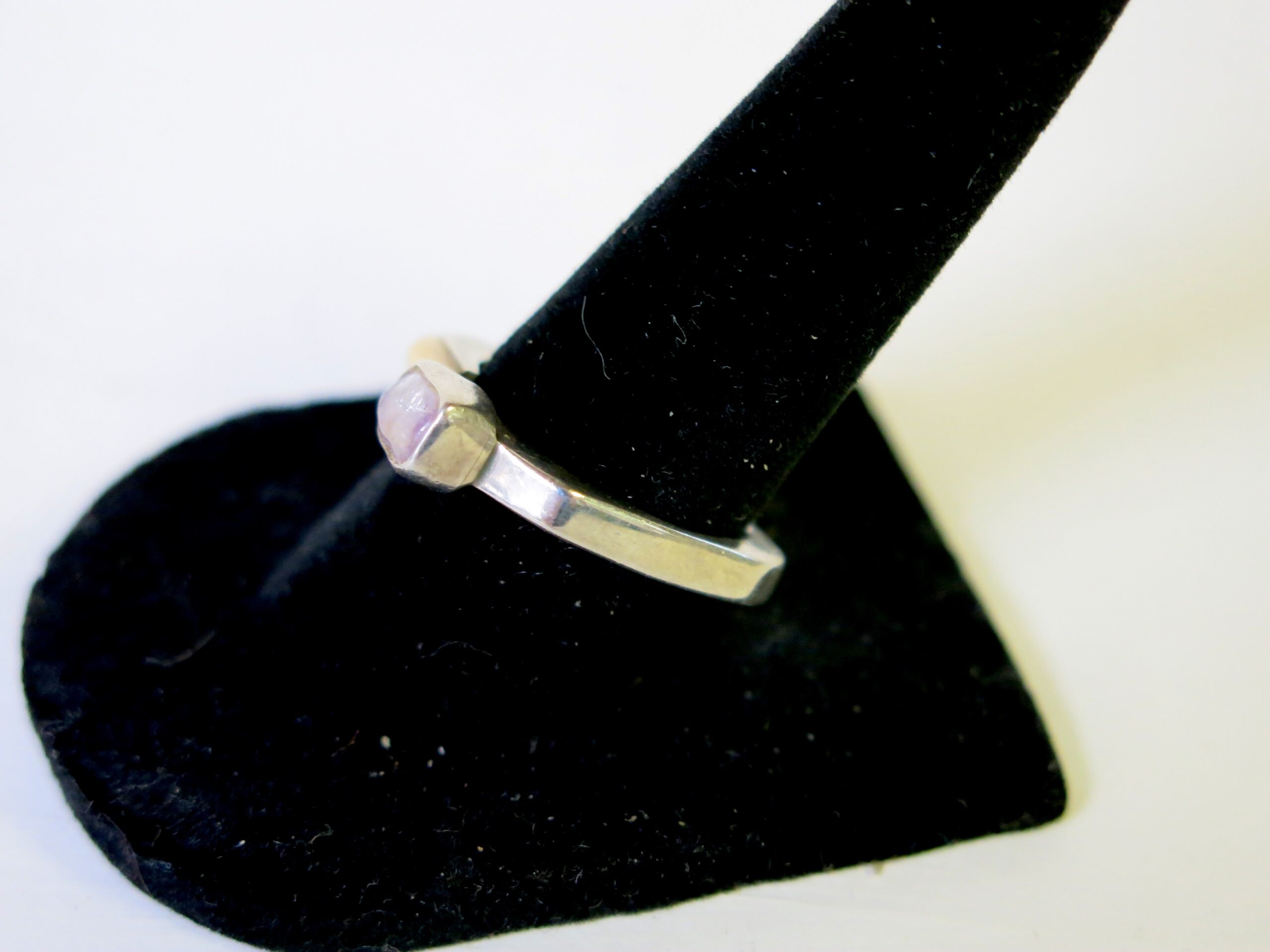 Each Lilly Barrack piece is individually handmade at her studio in New Mexico. Her pieces are forged from 925 Sterling Silver. The ring has a bezel set amethyst stone and 14 carat gold bar. Every stone is handpicked to ensure that every piece is unique. Size at 7.5 (easily resized)