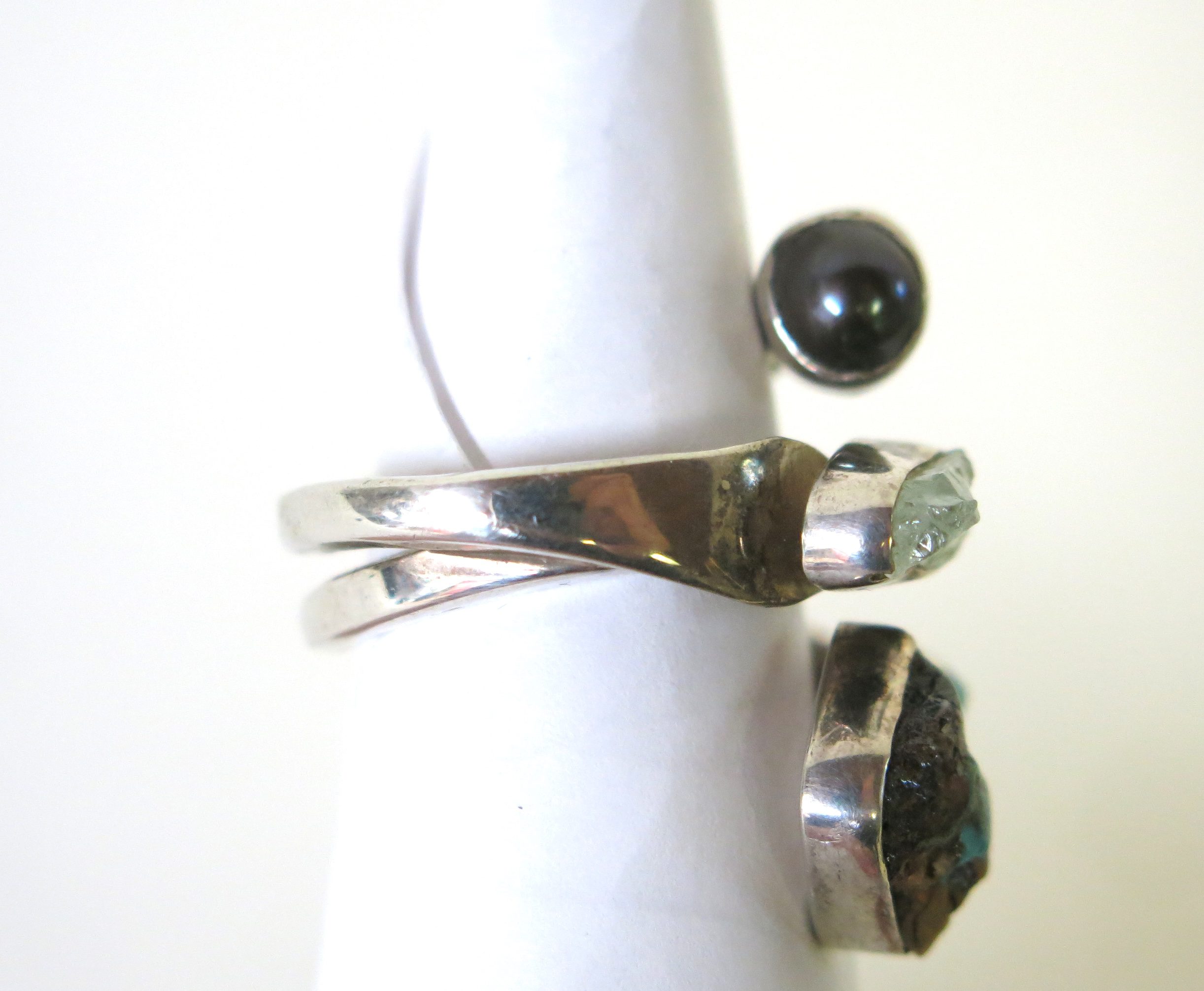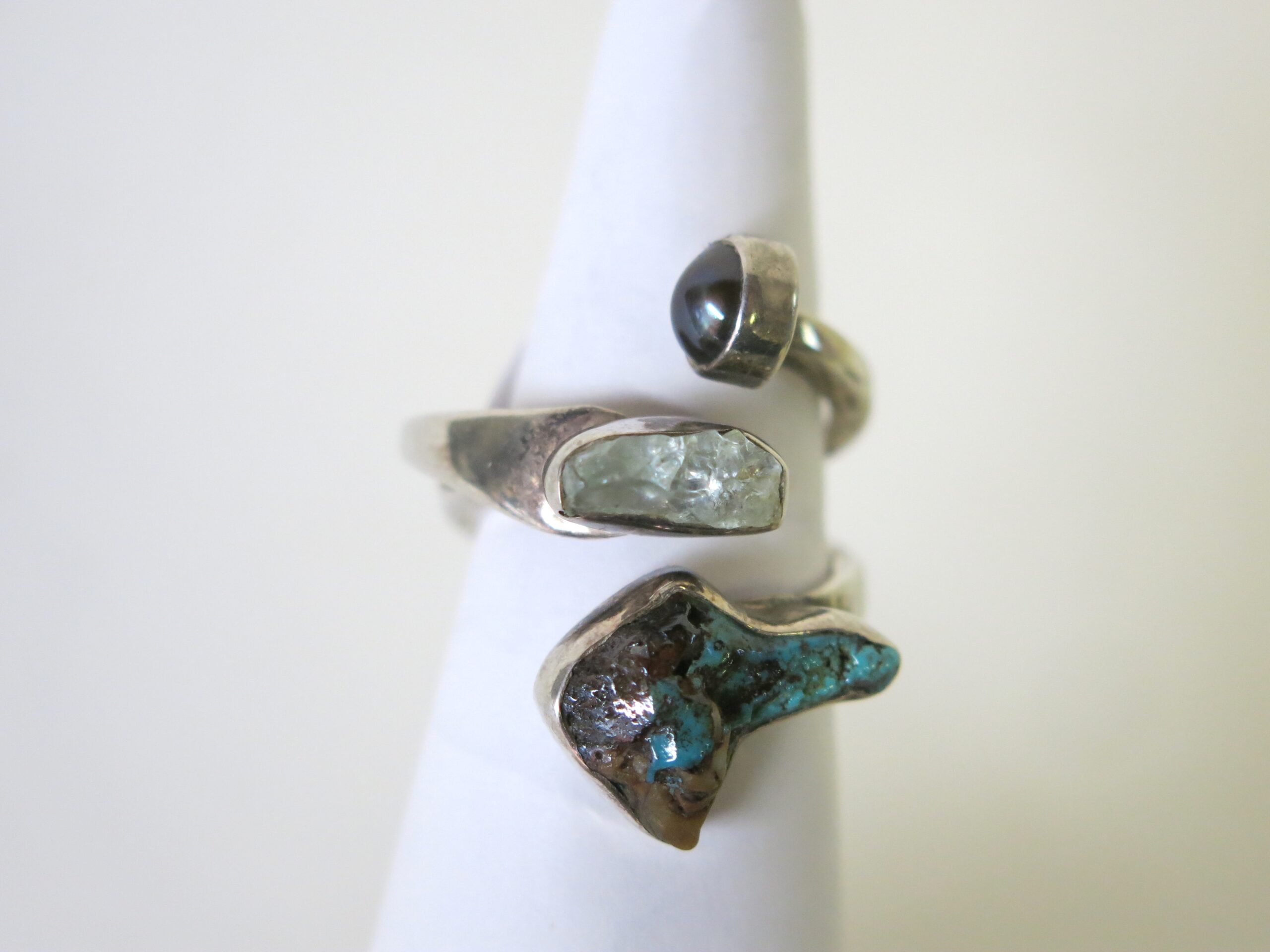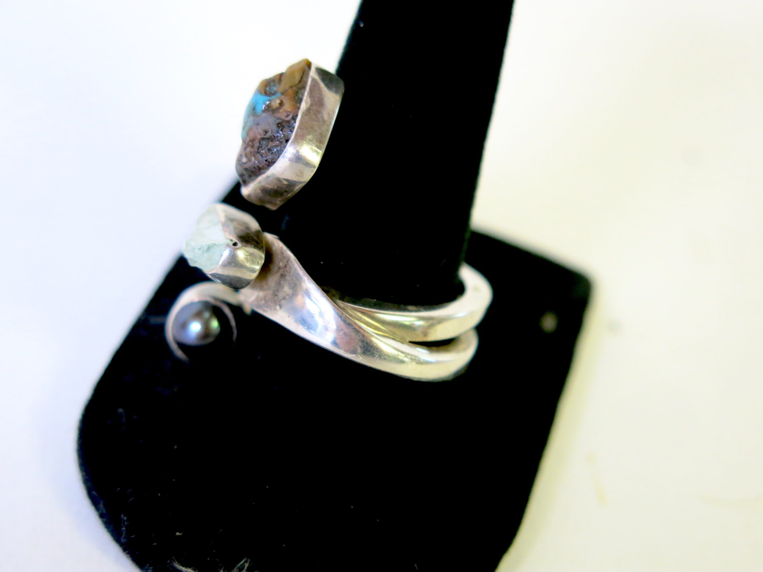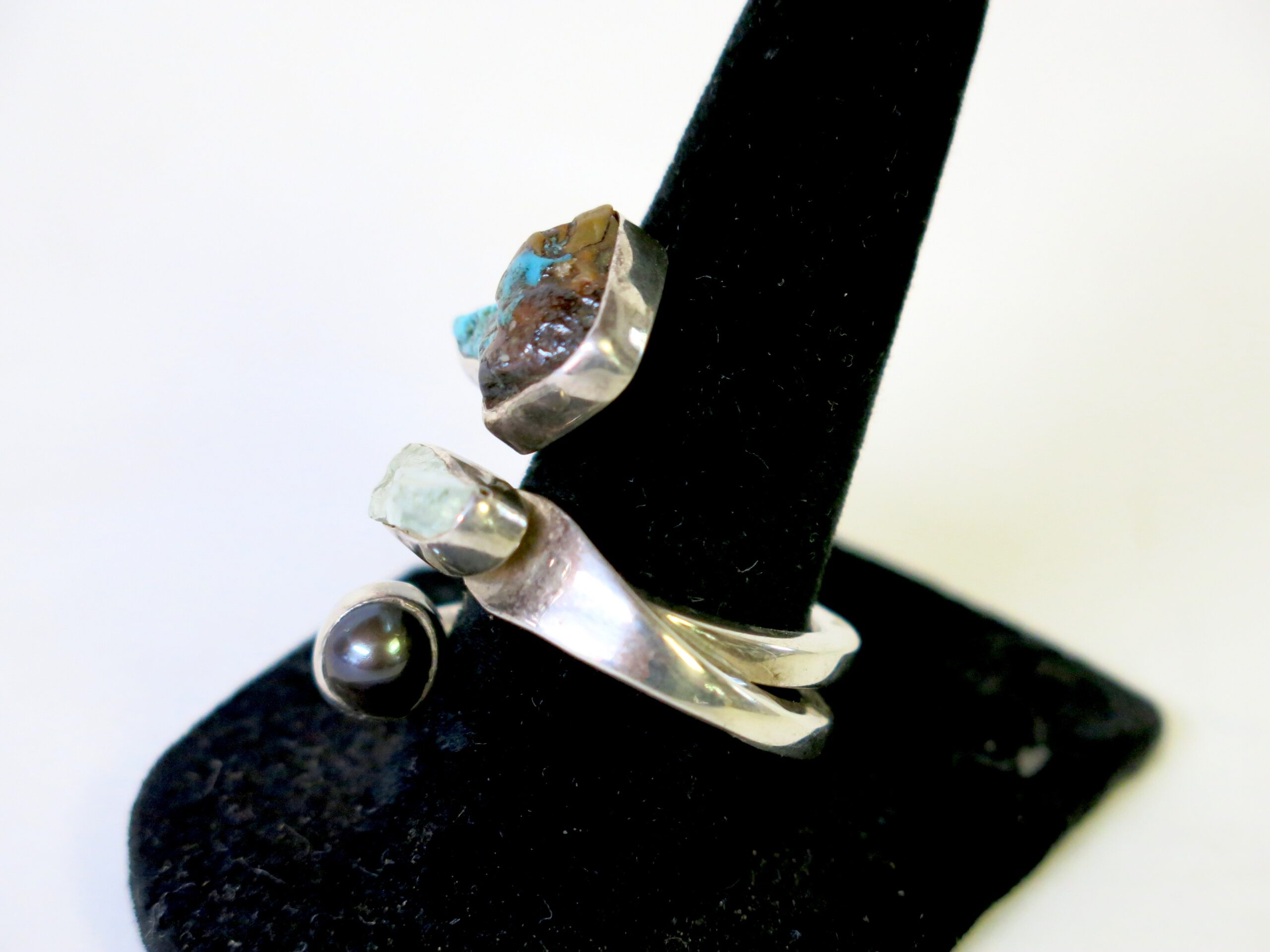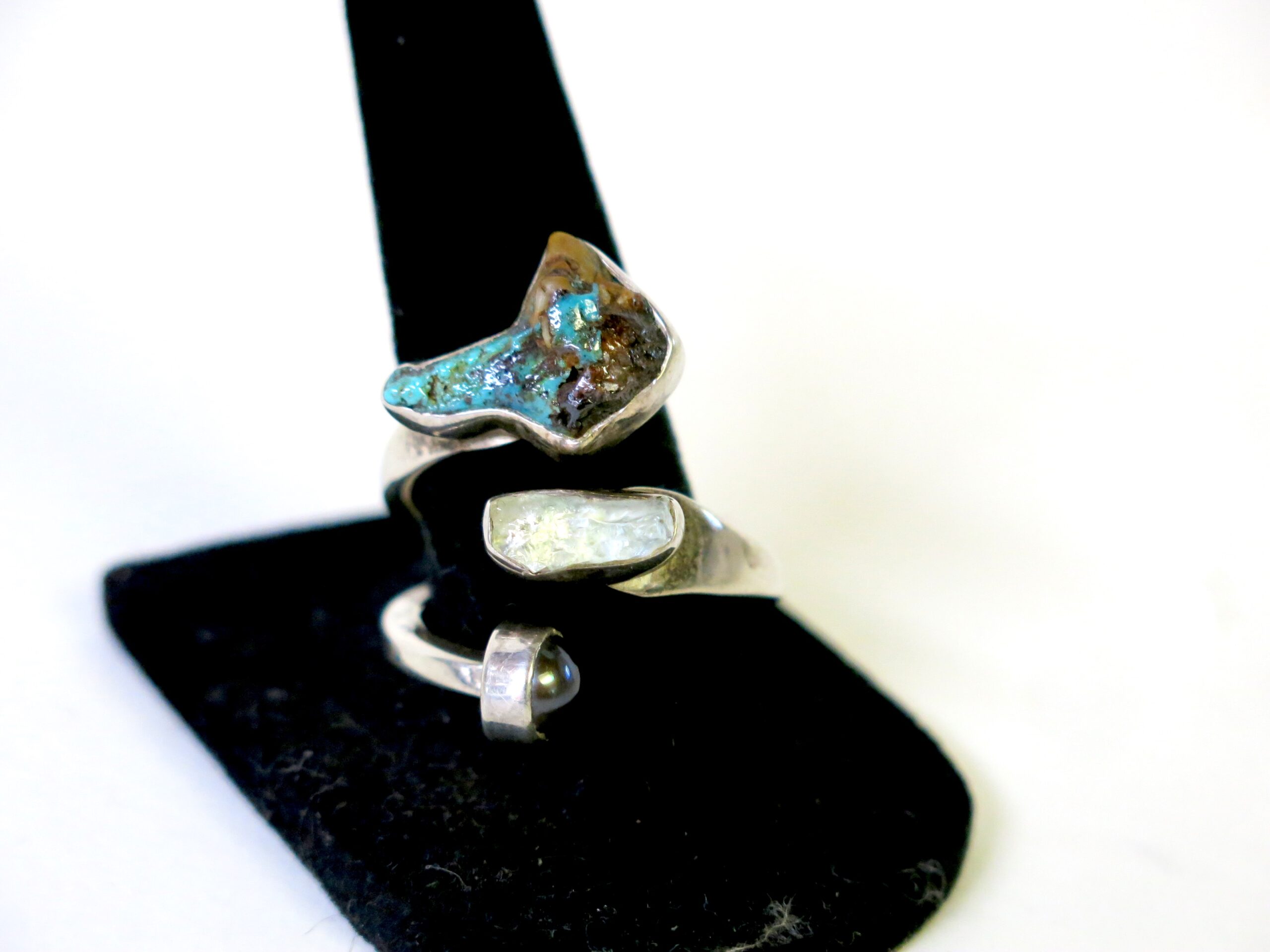 Lilly Barrack Sterling Silver Ring with Turquoise, Quarts and Black Pearl
